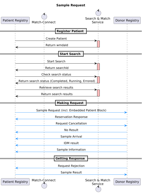 - A typical response to the Sample Request message is the Sample Arrival Date message. In addition to that, it is mandatory (by the accreditation standards) that the donor registry also sends an IDM Result message to inform the patient registry of the known diseases of the donor.