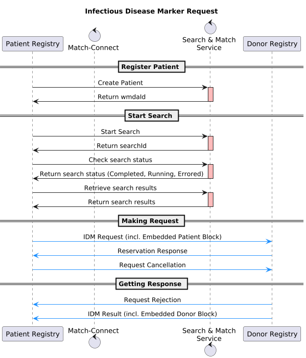 - IDM Request does specify what set of infectious disease markers to be tested